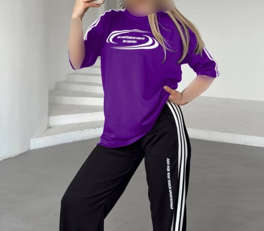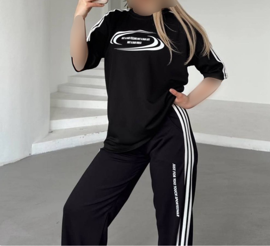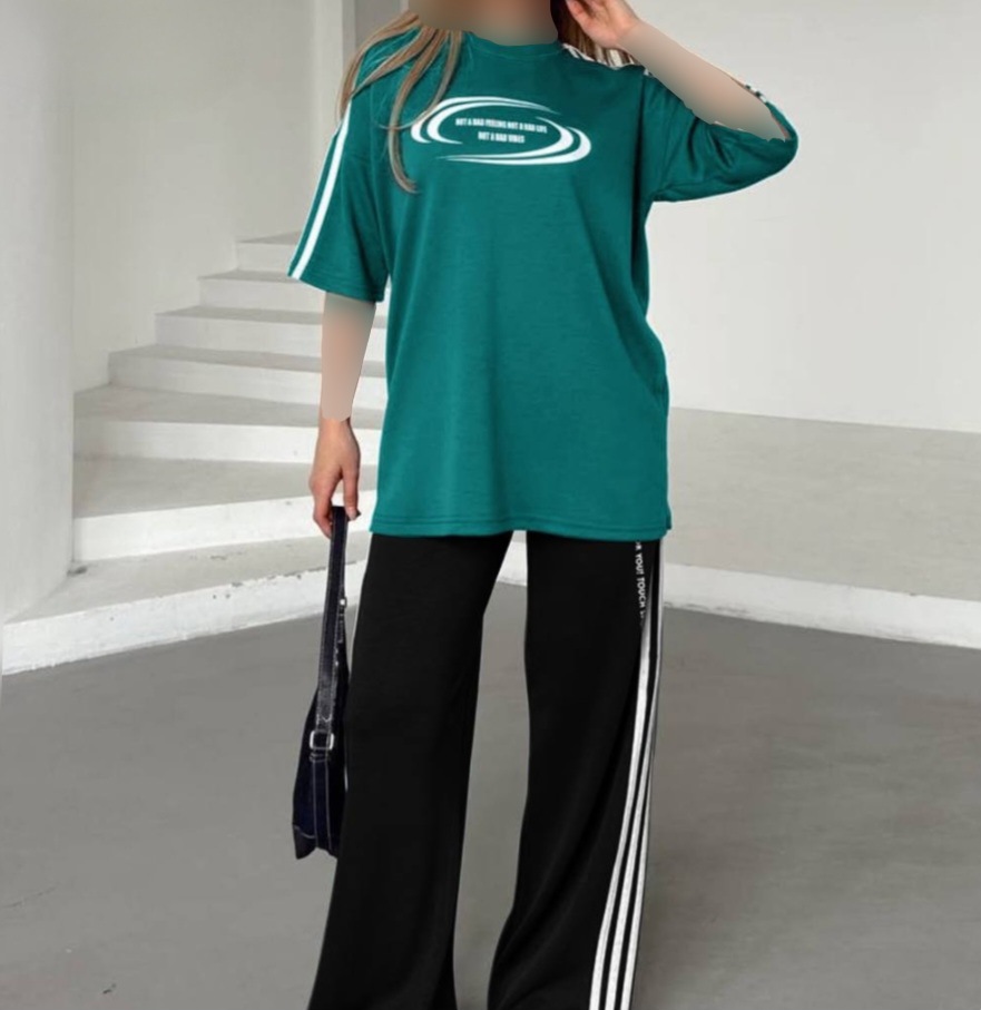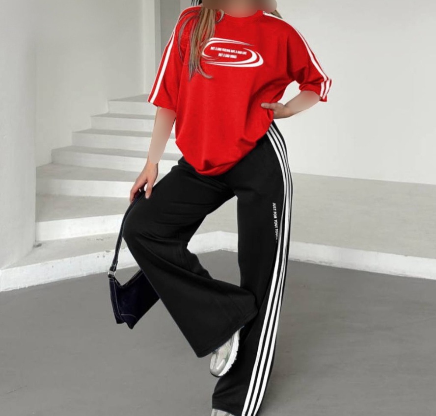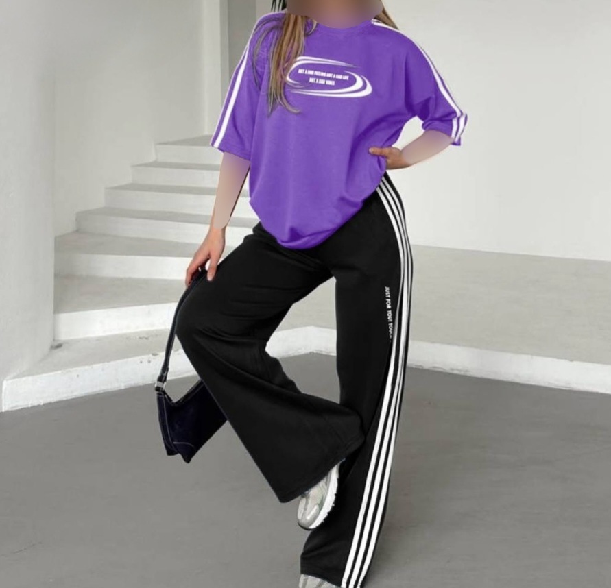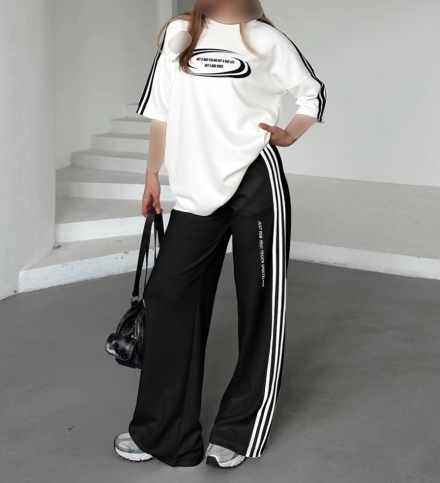 تیشرت و شلوار بگ 3 نوار دوزی شده
